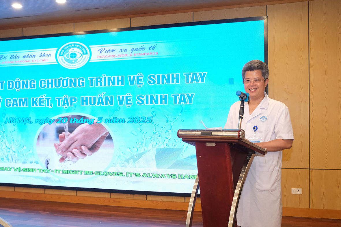 Phát biểu tại Lễ phát động hưởng ứng Ngày Vệ sinh tay Thế giới năm 2025, PGS.TS Phạm Ngọc Đông, Giám đốc Bệnh viện Mắt Trung ương cho biết, nhiễm khuẩn bệnh viện trong chăm sóc y tế là một vấn đề nghiêm trọng ảnh hưởng đến chất lượng điều trị, an toàn người bệnh và chi phí y tế. Nếu chúng tuân thủ thực hành vệ sinh bàn tay sẽ giúp giảm khoảng 50% nhiễm khuẩn bệnh viện. Vệ sinh tay đúng cách, đúng thời điểm sẽ ngăn ngừa lây nhiễm từ người bệnh sang người bệnh, từ người bệnh sang nhân viên  y tế, từ bệnh lý vô trùng sang bệnh lý nhiễm trùng.
