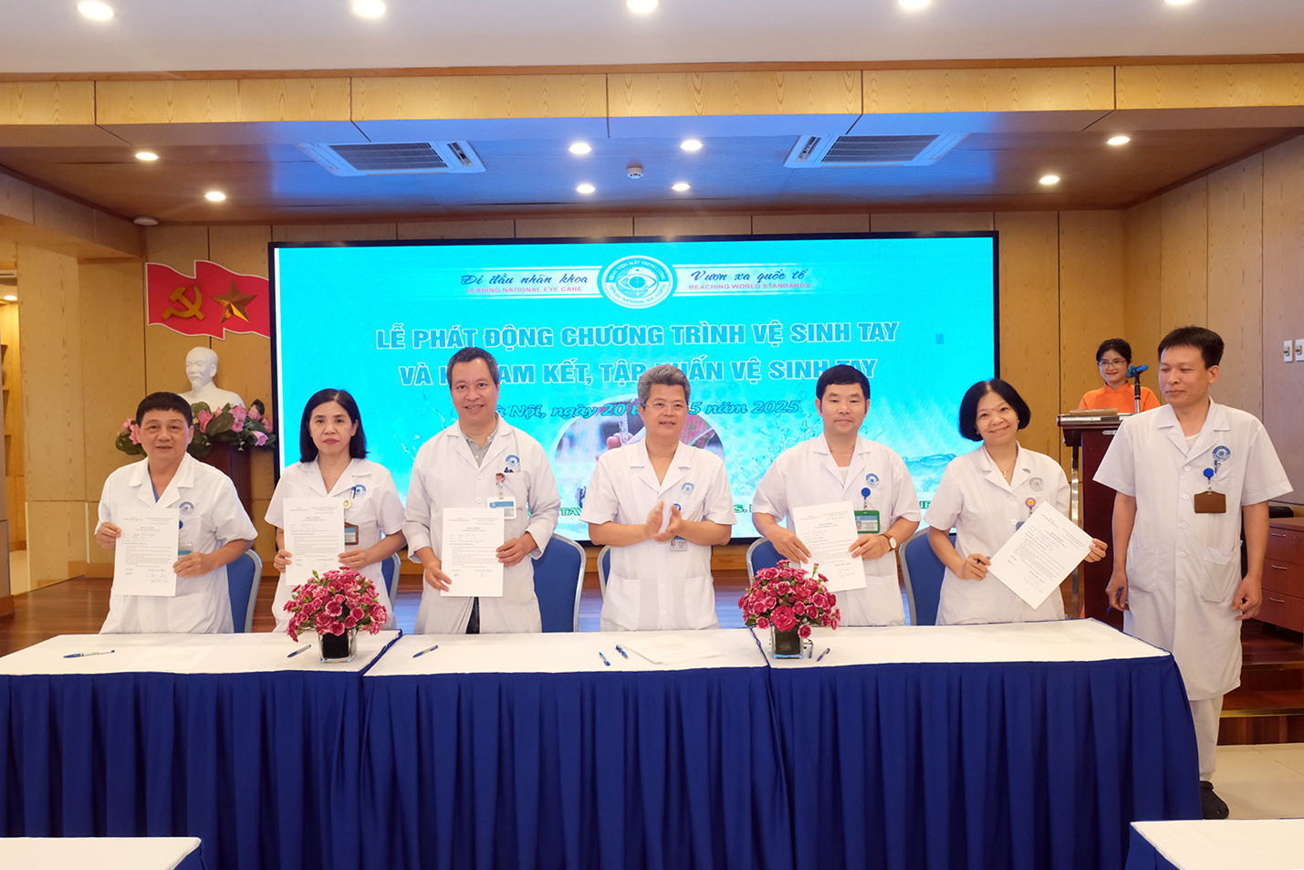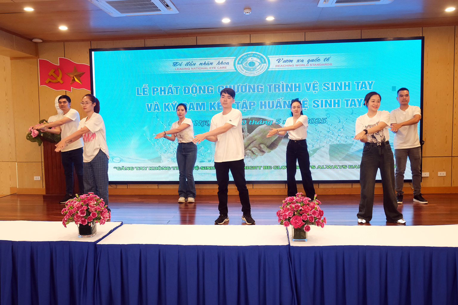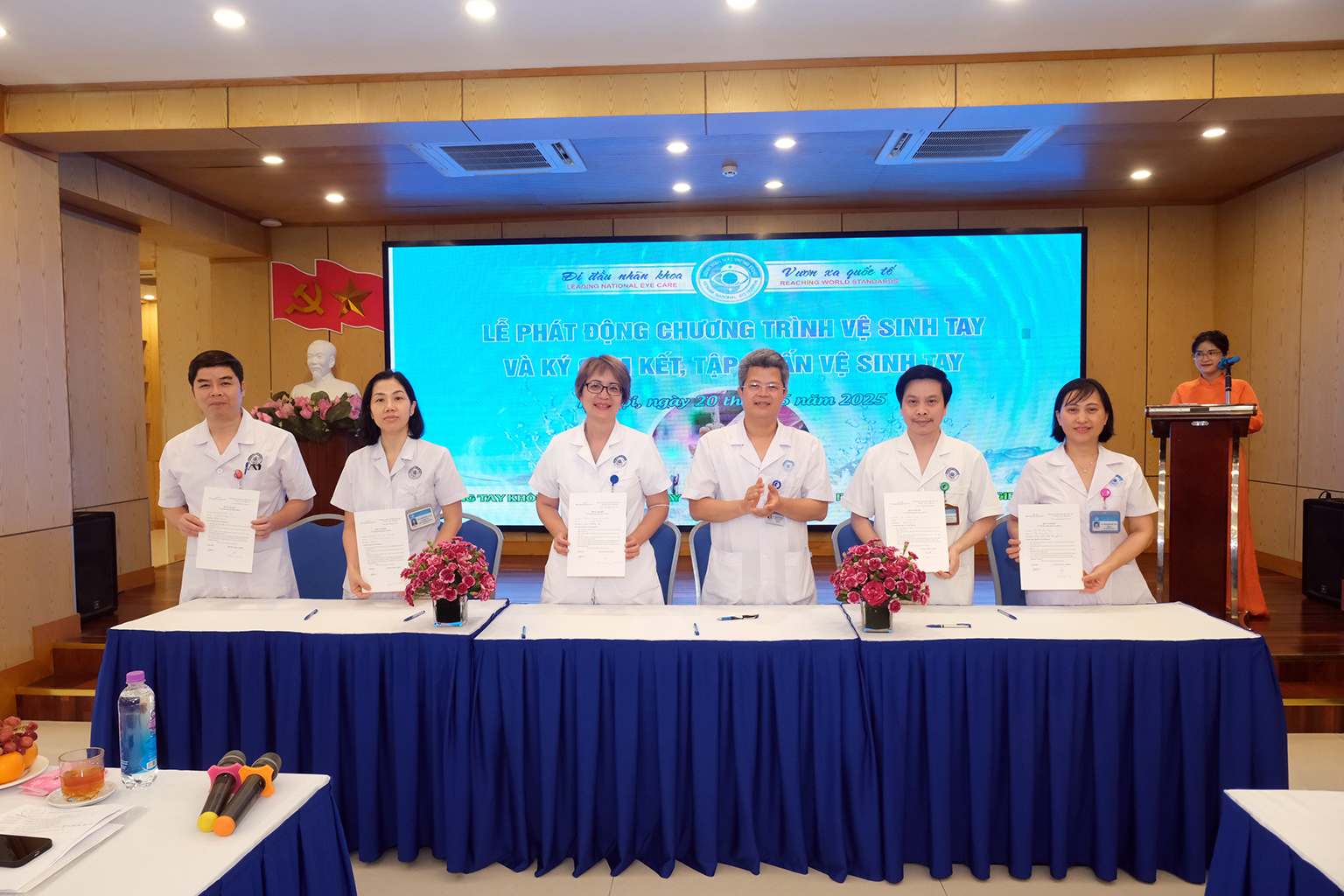 Ngày 20/5/2025, Bệnh viện Mắt Trung ương tổ chức Lễ phát động chương trình vệ sinh tay, kêu gọi toàn thể cán bộ, nhân viên y tế, người lao động, bệnh nhân và người nhà bệnh nhân cùng thực hiện vệ sinh tay đúng cách. Đồng thời yêu cầu các khoa, phòng Bệnh viện ký cam kết thực hiện, sử dụng găng tay đúng, tăng cường công tác kiểm soát nhiễm khuẩn để mang lại hiệu quả cao nhất trong điều trị và chăm sóc người bệnh.