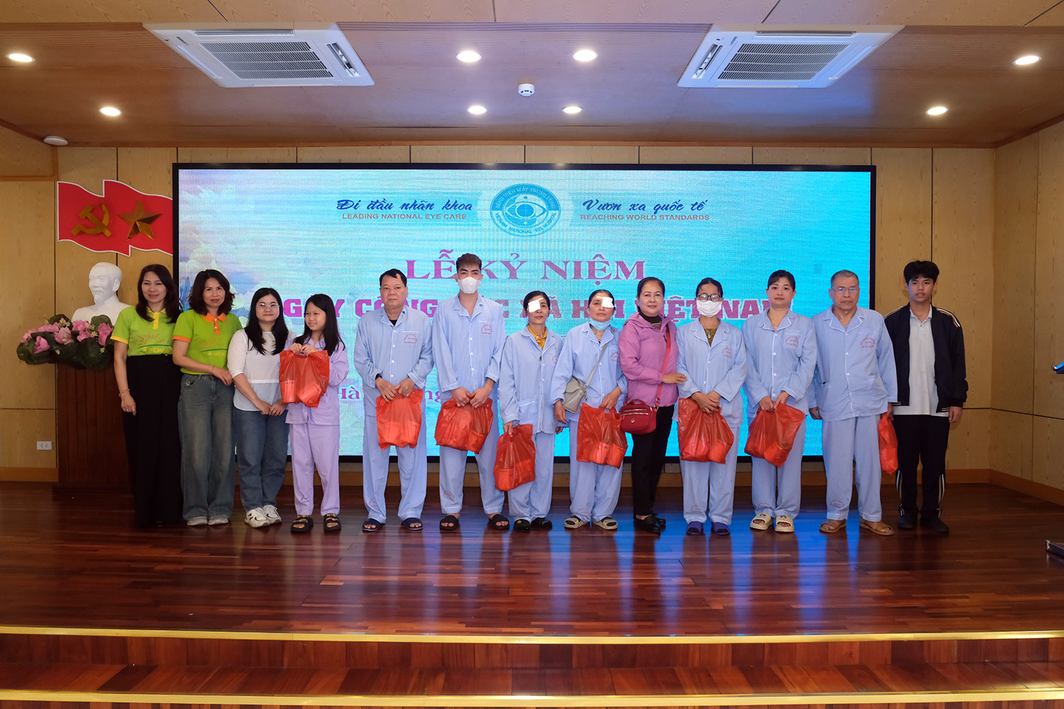 Nhân dịp này, Bệnh viện Mắt Trung ương phối hợp với Công ty TNHH Đầu tư và quản lý Bảo Lâm Holdings, Quận đoàn Hai Bà Trưng trao 60 suất quà gồm sữa bột, bánh kẹo, sách vở… cho các bệnh nhân, bệnh nhi có hoàn cảnh khó khăn đang điều trị tại Bệnh viện Mắt Trung ương.