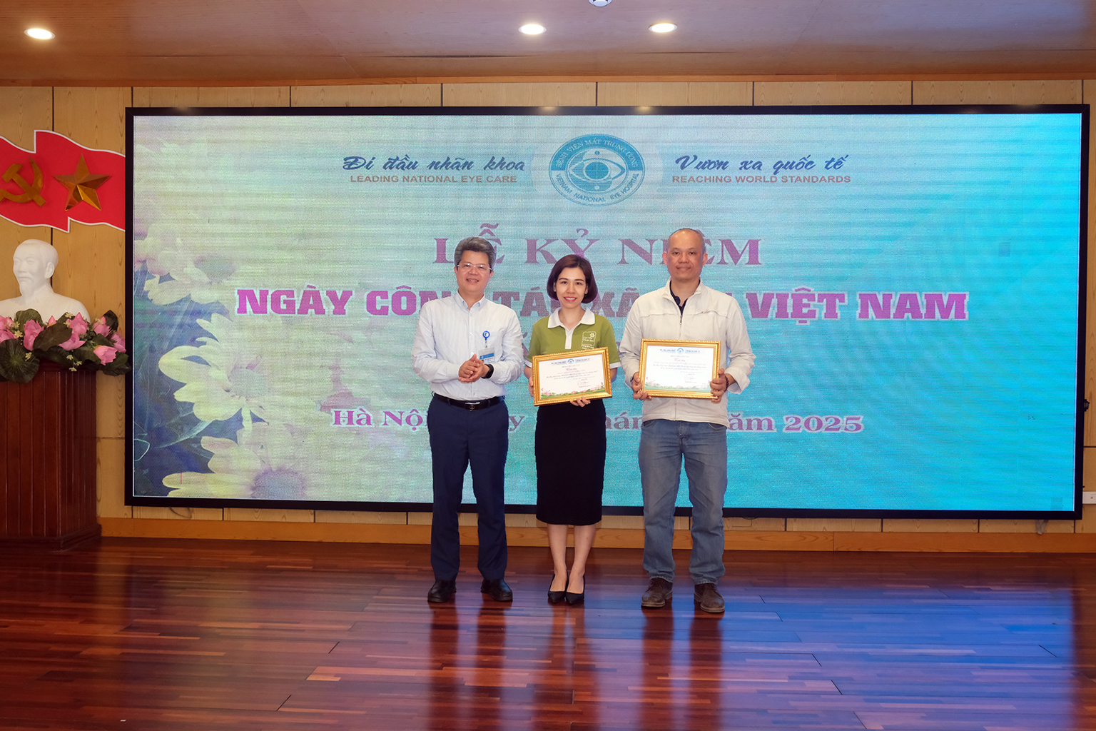 Tại Lễ kỷ niệm Ngày Công tác xã hội Việt Nam 25/3, ông Nguyễn Đức Thành, Phó Giám đốc Bệnh viện Mắt Trung ương kiêm phụ trách Phòng CTXH đã đọc thư của Bộ trưởng Bộ Y tế Đào Hồng Lan gửi tới toàn thể cán bộ, nhân viên, cộng tác viên đang hoạt động trong lĩnh vực công tác xã hội. Lá thư có đoạn viết: “Năm 2025 có ý nghĩa đặc biệt quan trọng, là tăm tiền đề đất nước ta bước vào Kỷ nguyên mới - Kỷ nguyên vươn mình phát triển giàu mạnh, thịnh vượng của dân tộc, với phương châm “Công tác xã hội Việt Nam- Đổi mới, kết nối và chuyên nghiệp”, tôi tin tưởng rằng đội ngũ những người làm công tác xã hội tiếp tục phát huy thành tựu, luôn nỗ lực rèn luyện chuyên môn, đạo đức nghề nghiệp để phụng sự Tổ quốc, phục sự nhân dân”.
