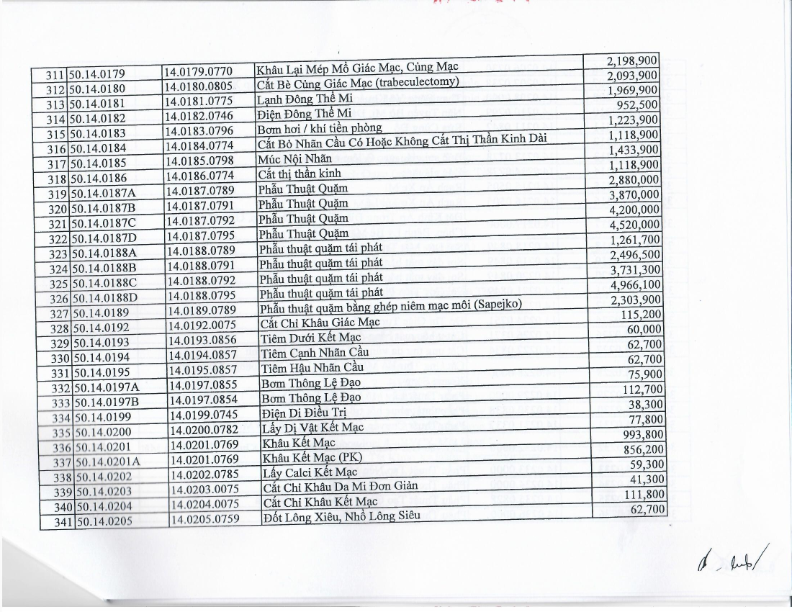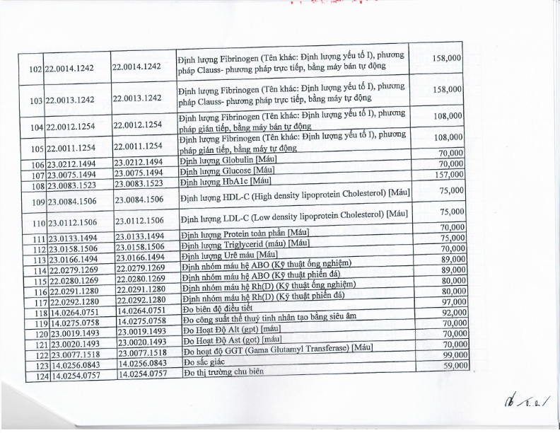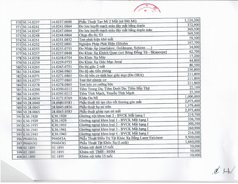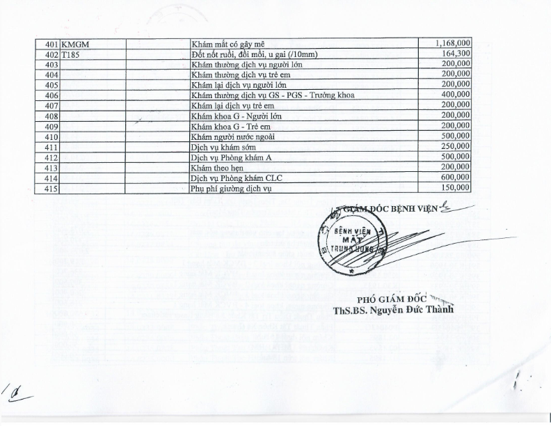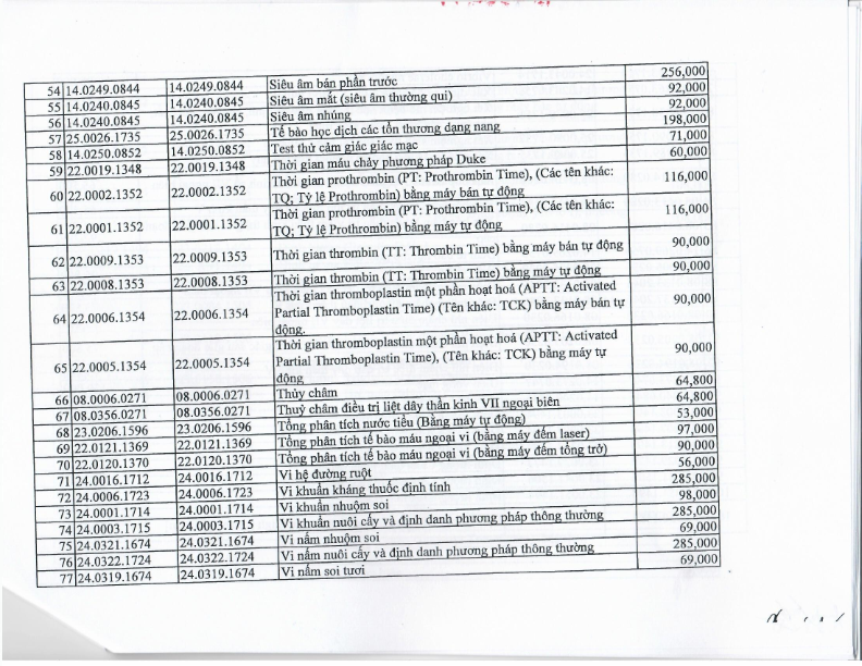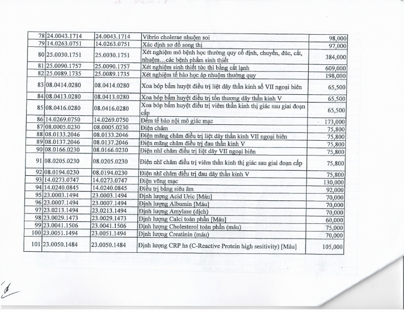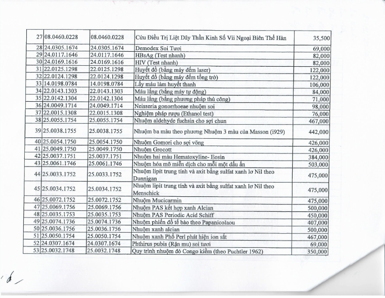 Bảng giá dịch vụ khám chữa bệnh