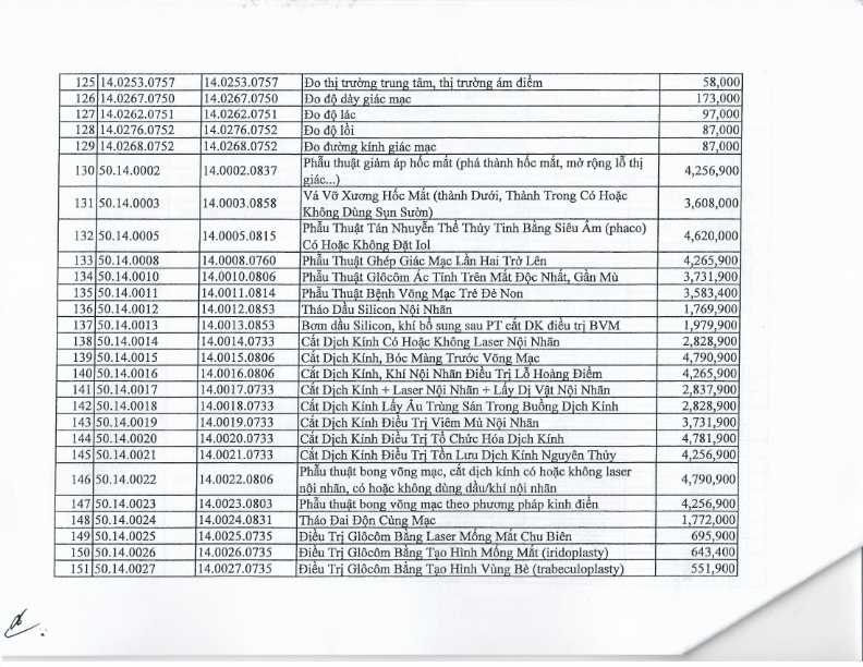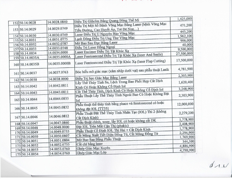 Quyết định ban hành giá dịch vụ Laser femtosecond điều trị tật khúc xạ