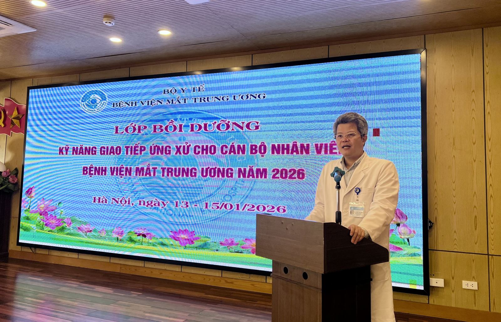 Hướng tới mục tiêu chăm sóc toàn diện, vì sự hài lòng của người bệnh, Bệnh viện Mắt Trung ương tiếp tục triển khai kế hoạch bồi dưỡng, nâng cao kỹ năng giao tiếp, ứng xử cho toàn thể cán bộ, viên chức, người lao động trong bệnh viện. Từ ngày 13 đến 22/01/2026, Bệnh viện Mắt Trung ương triển khai kê hoạch mời các chuyên gia trong lĩnh vực giao tiếp, ứng xử trực tiếp tập huấn, chia sẻ các kỹ năng, quy trình, thực hành xử lý một số tình huống giao tiếp thường gặp trong môi trường bệnh viện.