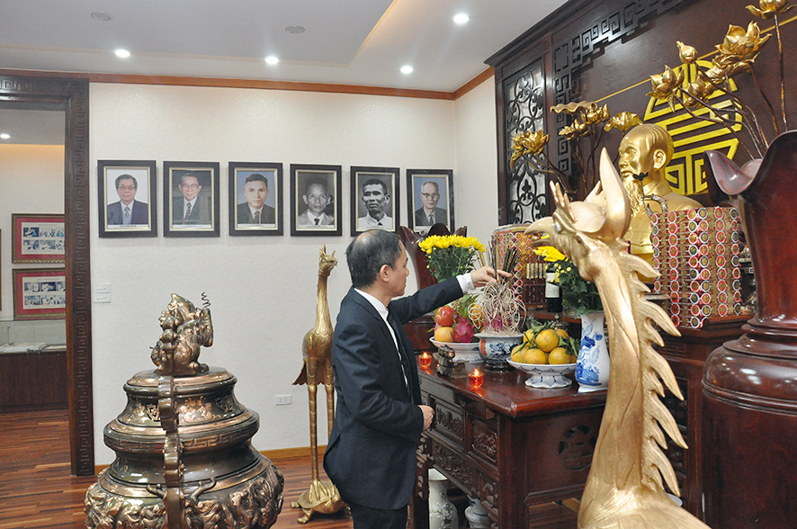 Trước khi bắt đầu buổi lễ, PGS.TS. Nguyễn Xuân Hiệp – Giám đốc bệnh viện Mắt TW và các đại biểu đã thành kính dâng hương tại Phòng truyền thống Bệnh viện, thắp hương tượng đài Giáo sư Nguyễn Xuân Nguyên và tri ân các vị lãnh đạo, các thế hệ thầy cô giáo đã mất.