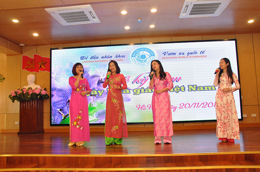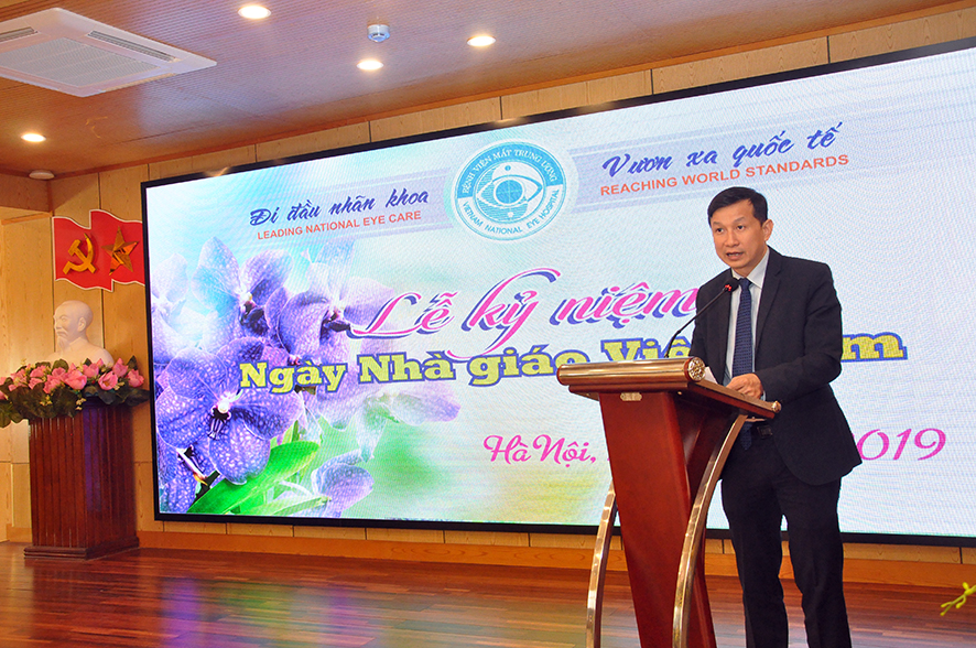 Phát biểu tại buổi lễ, PGS.TS. Nguyễn Xuân Hiệp – Giám đốc bệnh viện Mắt TW ôn lại truyền thống, ý nghĩa ngày Nhà giáo Việt Nam cũng như gửi lời chúc đến tất cả các thầy cô giáo, cán bộ và nhân viên của bệnh viện và các cơ sở đào tạo nhãn khoa, những người đã và đang vượt qua nhiều khó khăn góp phần xây dựng bệnh viện ngày càng phát triển và đóng góp cho sự nghiệp đào tạo cán bộ phòng chống mù lòa cả nước. PGS.TS. Nguyễn Xuân Hiệp cho biết Bệnh viện luôn xác định đào tạo là một trong những nhiệm vụ quan trọng hàng đầu. Lãnh đạo bệnh viện luôn dành sự quan tâm sâu sắc đến công tác đào tạo, đầu tư cơ sở vật chất, mở rộng các nội dung đào tạo, cải tiến nâng cao chất lượng chương trình đào tạo... Bên cạnh đó bệnh viện không ngừng mở rộng quan hệ hợp tác, cả trong nước và quốc tế. Hiện nay bệnh viện có quan hệ hợp tác đào tạo với nhiều nước như Nhật Bản, Hàn Quốc, Singapore, Thái Lan… Bệnh viện Mắt TW không chỉ là cơ sở đào tạo các học viên trong nước, mà còn có rất nhiều học viên nước ngoài đến từ châu Âu, Hàn Quốc, Mông Cổ, Lào… theo học. Đây là một bước tiến mới, một nỗ lực rất đáng ghi nhận trong công tác đào tạo của bệnh viện, góp phần nâng tầm ngành Nhãn khoa Việt Nam ngang hàng với các nước hàng đầu trong khu vực.