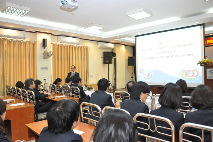 Thay mặt Đảng ủy, BS.TS. Nguyễn Xuân Tịnh – phó Bí thư, đã trình bày báo cáo tổng kết hoạt động năm 2017 của Đảng bộ. Trong năm vừa qua dưới sự lãnh đạo của Đảng ủy, Bệnh viện Mắt TW đã vượt qua nhiều khó khăn, hoàn thành xuất sắc các nhiệm vụ được giao, thực hiện vượt chỉ tiêu chuyên môn, chất lượng khám chữa bệnh không ngừng được nâng cao, môi trường cảnh quan bệnh viện ngày càng xanh, sạch, đẹp, tư tưởng cán bộ Đảng viên, viên chức, người lao động ổn định, hoàn toàn tin tưởng vào sự lãnh đạo của Đảng, không có biểu hiện suy thoái về chính trị, đạo đức, lối sống. Toàn Đảng bộ có 15 tổ chức cơ sở Đảng đạt danh hiệu “Tổ chức cơ sở Đảng trong sạch, vững mạnh”, 3 tổ chức cơ sở Đảng đạt danh hiệu “Hoàn thành tốt nhiệm vụ”, 25 đảng viên hoàn thành xuất sắc nhiệm vụ, 92 đảng viên hoàn thành tốt nhiệm vụ, (4 đảng viên không xếp loại vì chưa đủ thời gian). Bệnh viện đã được Đảng, Nhà nước trao tặng Huân chương Độc lập hạng Ba, được Thủ tướng Chính phủ đến thăm nhân dịp lễ kỷ niệm 100 năm thành lập, 2 tập thể, 2 cá nhân được tặng Bằng khen của Thủ tướng Chính phủ, nhiều tập thể cá nhân được tặng Bằng khen của Bộ y tế. Trong năm 2018 Đảng bộ bệnh viện quyết tâm giữ vững danh hiệu “Tổ chức cơ sở Đảng trong sạch, vững mạnh”, thực hiện thắng lợi các chỉ tiêu của Nghị quyết Đại hội Đảng bộ bệnh viện nhiệm kỳ 2016-2020, Đại hội Đảng bộ quận Hai Bà Trưng lần thứ XXV, các nghị quyết, chỉ thị của Đảng ủy cấp trên, lãnh đạo bệnh viện hoàn thành vượt mức các nhiệm vụ, chỉ tiêu chuyên môn, xứng đáng với danh hiệu “Đi đầu Nhãn khoa – Vươn xa quốc tế”.