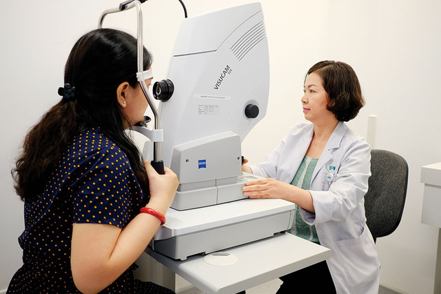 Mắt của bạn sẽ được nhỏ thuốc để làm giãn (mở rộng) đồng tử của bạn. Điều này cho phép bác sĩ nhãn khoa nhìn được xem bên trong mắt của bạn có vấn đề gì không nhờ một thấu kính đặc biệt.