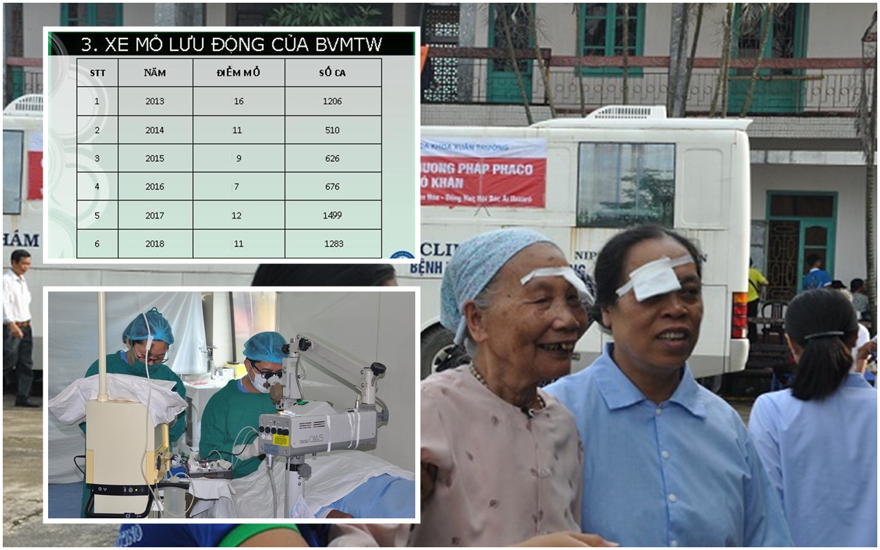 Sau hơn 10 năm triển khai các chương trình với xe mổ mắt lưu động, Bệnh viện Mắt Trung ương đã phối hợp, thực hiện các chương trình từ Bộ Y tế, các cơ quan ban ngành, các tổ chức trong nước và Quốc tế, các nhà hảo tâm... thực hiện hơn 14.750 ca phẫu thuật đục thể thủy tinh tại cộng đồng. Với kinh phí cho một ca mổ mắt trên xe lưu động là 8 triệu đồng, ngoài việc đóng góp cho công cuộc phòng chống mù lòa nói chung của cả nước, chương trình xe mổ lưu động Bệnh viện Mắt Trung ương đã góp phần giảm gánh nặng ngân sách Nhà nước, quỹ Bảo hiểm Y tế ước tính khoảng 90 - 100 tỷ đồng.