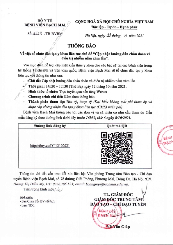 Đào tạo y khoa liên tục với chủ đề "Cập nhập hướng dẫn chẩn đoán và điều trị nhiễm nấm xâm lấn" do BV Bạch Mai tổ chức
