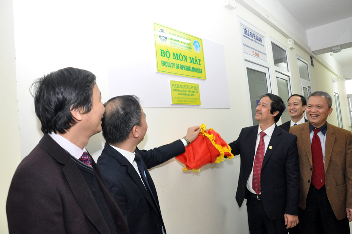 Kết thúc buổi lễ là nghi thức treo biển Bộ môn Mắt- Khoa Y dược ĐHQG tại phòng H602, nhà H , Bệnh viện Mắt Trung ương.