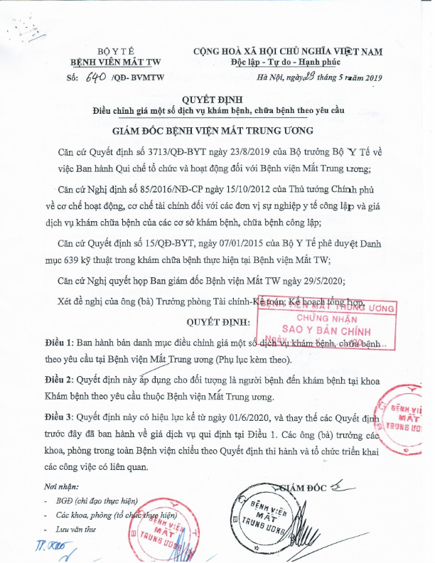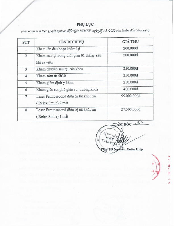 Quyết định ban hành giá dịch vụ Laser femtosecond điều trị tật khúc xạ