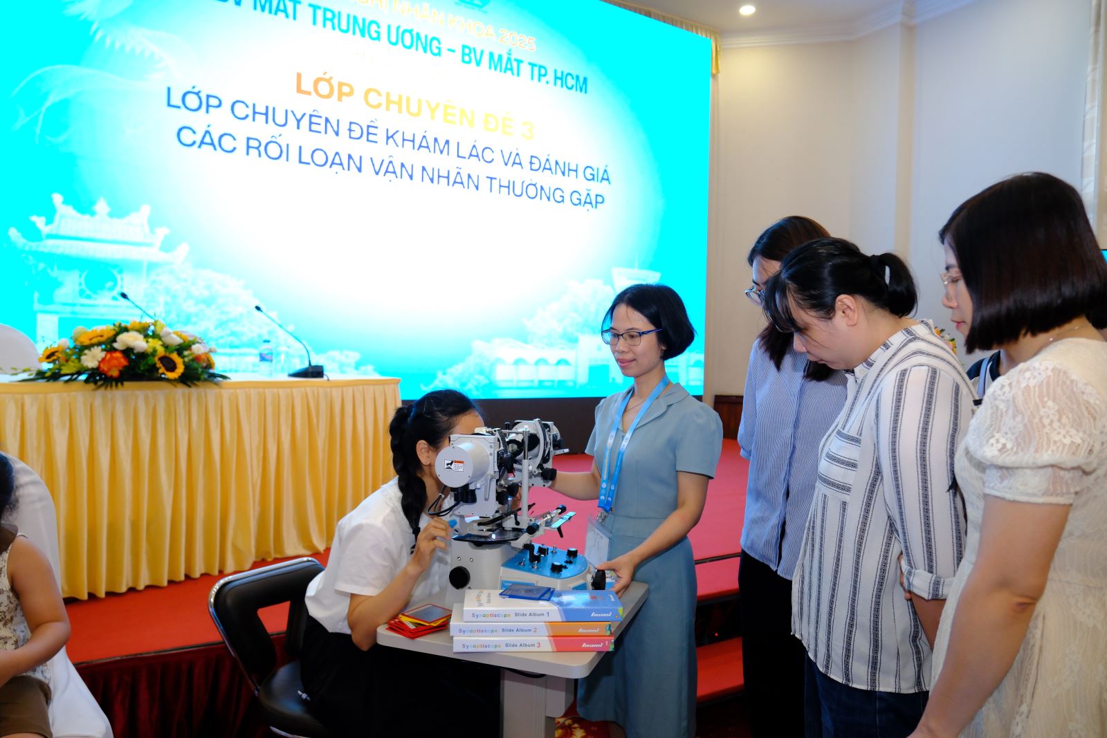 Trong chương trình Hội nghị Nhãn khoa 2025,Bệnh viện Mắt Trung ương đã tổ chức cập nhật kiến thức nhãn khoa mới thông qua các khóa học, đào tạochuyên đề thuộc các lĩnh vực: Mắt trẻ em; Glôcôm; Chẩn đoán hình ảnh, xét nghiệm và các vấn đề liên quan giác mạc (bản đồ giác mạc) cho gần 100học viên là các bác sỹ, kỹ thuật viên, điều dưỡng chuyên ngành Nhãn khoa.