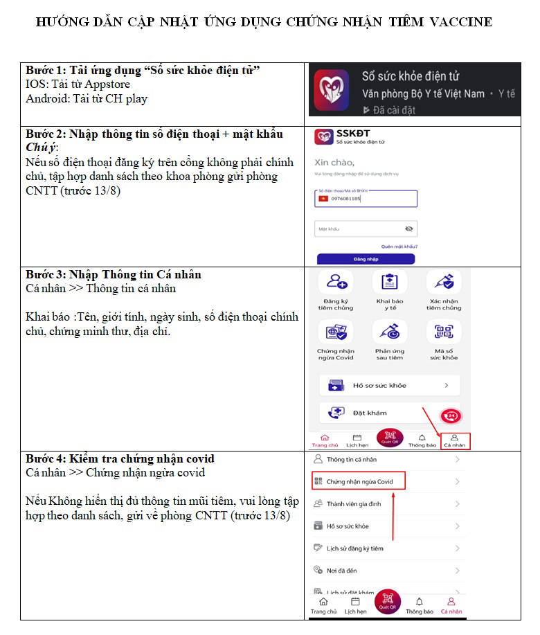 Hướng dẫn cập nhật ứng dụng chứng nhận tiêm Vaccine