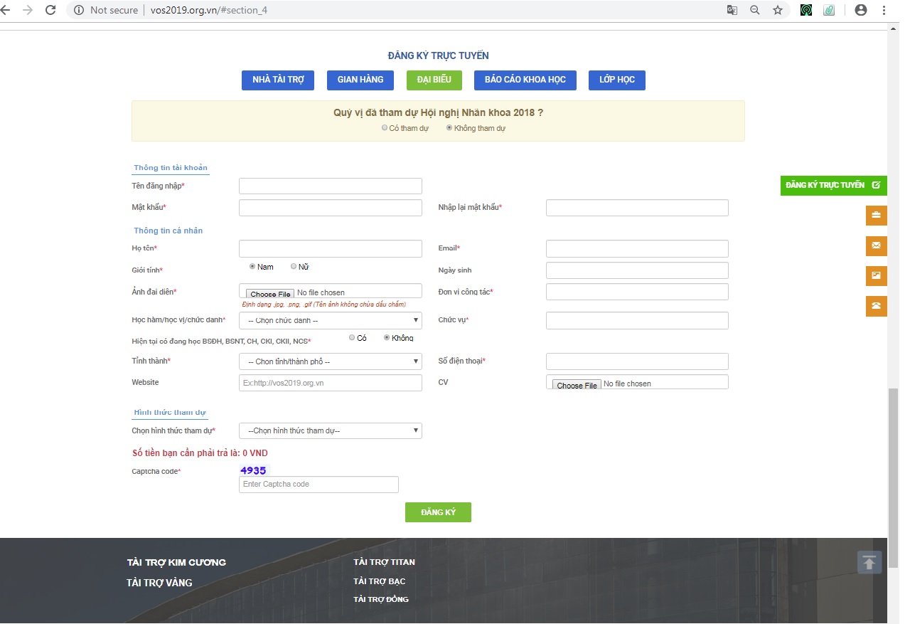 - Đăng nhập website chính thức của Hội nghị: http\\www.vos2019.org.vn