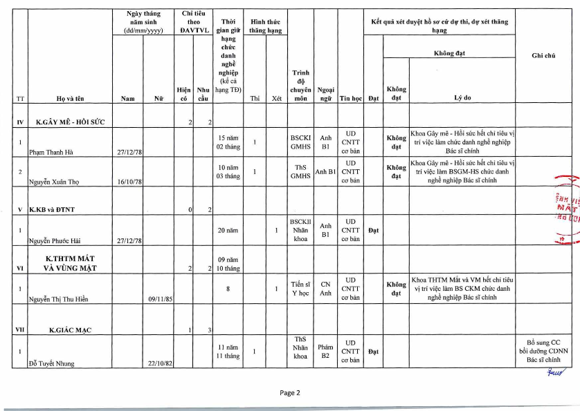 Thông báo: Về việc công nhận kết quả xét tuyển lao động hợp đồng đối với các vị trí việc làm thuộc khoa Gây mê – Hồi sức