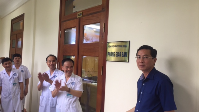 Sáng 25/9/2017 Bệnh viện Mắt trung ương đã làm lễ khánh thành và đưa vào sử dụng phòng giao ban mới của bệnh viện tại P308 nhà A bệnh viện. TS.BS Nguyễn Xuân Hiệp – Giám đốc bệnh viện đã cùng với đại diện của Đảng ủy, Ban giám đốc và lãnh đạo các khoa phòng, khối phòng ban của bệnh viện đã tiến hành cắt băng khánh thành chính thức sử dụng phòng giao ban bệnh viện mới.