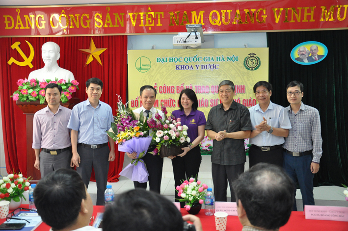 GS.TS. Nguyễn Hữu Đức thay mặt Ban Giám đốc Đại học Quốc gia Hà Nội đã trao Quyết định bổ nhiệm cho các tân Phó giáo sư, chúc mừng và cảm ơn các tân Phó giáo sư đã giành nhiều tâm huyết, đóng góp cho sự phát triển không ngừng của Khoa Y Dược. Dù mới chỉ thành lập được 8 năm, nhưng với đội ngũ các nhà giáo như hiện nay chất lượng đào tạo của khoa đủ sức cạnh tranh với các trường Y dược trên địa bàn Hà Nội. Năm 2017 điểm chuẩn đầu vào của Khoa đã lọt vào tốp 4 khối Y dược.