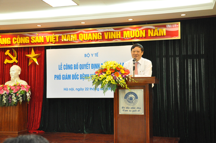 Thay mặt Ban Cán sự Đảng, Lãnh đạo Bộ Y tế GS.TS. Nguyễn Viết Tiến - Thứ trưởng Bộ Y tế đã trao quyết định cho PGS.TS. Cung Hồng Sơn và Ths. Nguyễn Đức Thành. Phát biểu tại lễ trao, Thứ trưởng Nguyễn Viết Tiến chúc mừng bệnh viện và cá nhân 2 phó giám đốc Cung Hồng Sơn và Nguyễn Đức Thànhđã đạt được sự tín nhiệm cao trong tập thể bệnh viện và chúc 2 đồng chí hoàn thành tốt nhiệm vụ được giao trong nhiệm kỳ mới. Đồng thời Thứ trưởng mong muốn Ban lãnh đạo cần nêu cao tinh thần đoàn kết, thống nhất, nâng cao năng lực, tinh thần trách nhiệm, lãnh đạo, chỉ đạo tập thể bệnh viện phấn đấu hoàn thành xuất sắc nhiệm vụ được Bộ Y tế giao, xứng đáng với bề dày truyền thống của một đơn vị anh hùng.