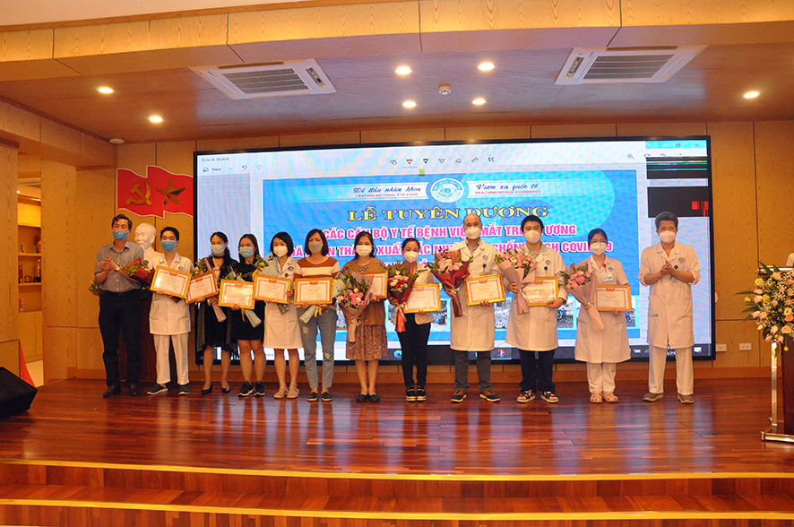ThS.BS Hoàng Minh Anh – Trưởng phòng Kế hoạch tổng hợp bệnh viện Mắt Trung ương, trưởng đoàn công tác số 1 đại diện cho cả hai đoàn chia sẻ: “Mặc dù đã trở về với cuộc sống thường nhật nhưng cảm xúc những ngày được sống và làm việc trong tâm dịch của tôi vẫn còn nguyên vẹn. Thay mặt đoàn công tác, tôi xin chân thành cảm ơn sự quan tâm của Đảng uỷ, Ban Giám đốc, Công đoàn Bệnh viện Mắt TW và đặc biệt là tình cảm chia sẻ của các cán bộ, đồng nghiệp đã động viên, hỗ trợ Đoàn chuẩn bị chu đáo từ vật chất, tinh thần, là chỗ dựa niềm tin, là hậu phương vững chắc cho Đoàn vững tâm hoàn thành nhiệm vụ nơi tuyến đầu”.