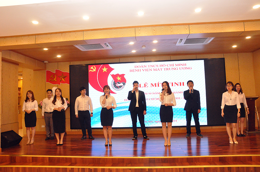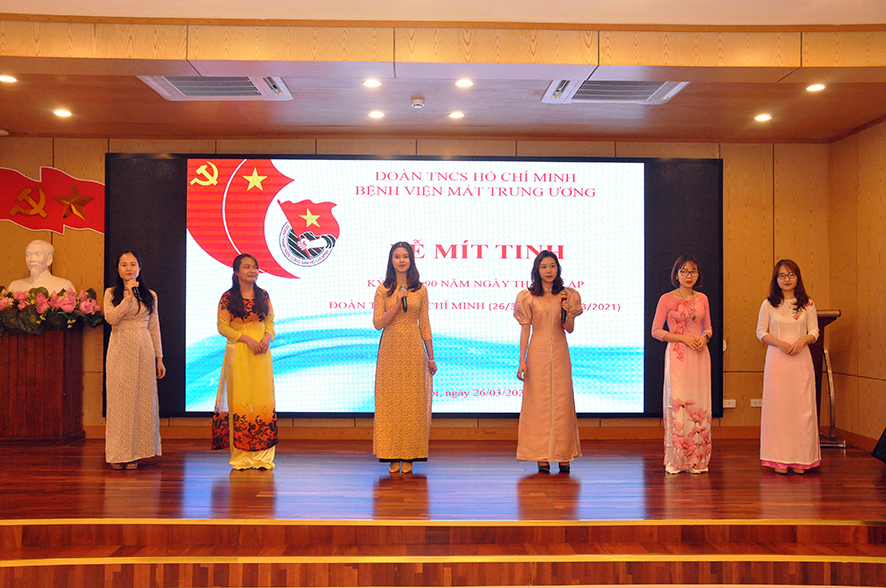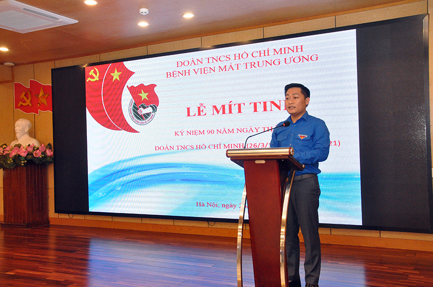 Mở đầu buổi lễ BS. Trần Trung Kiên – Bí thư Đoàn Thanh niên đã ôn lại lịch sử vẻ vang 90 năm của Đoàn TNCS Hồ Chí Minh với các truyền thống yêu nước nồng nàn, trung thành tuyệt đối với Đảng, với nhân dân và chế độ XHCN; truyền thống của đội quân xung kích Cách mạng dám đón lấy nhiệm vụ nặng nề, đi tới những nơi khó khăn, sáng tạo không ngừng; truyền thống đoàn kết trong lớp người cùng lứa tuổi trong các tổ chức Đoàn hội gắn bó với nhân dân; truyền thống hiếu học để tự mình nâng cao trình độ chính trị, văn hoá, khoa học kỹ thuật, say mê sáng tạo trong các hoạt động thực tiễn, cống hiến sức trẻ của mình cho sự nghiệp của dân tộc, của Đảng.