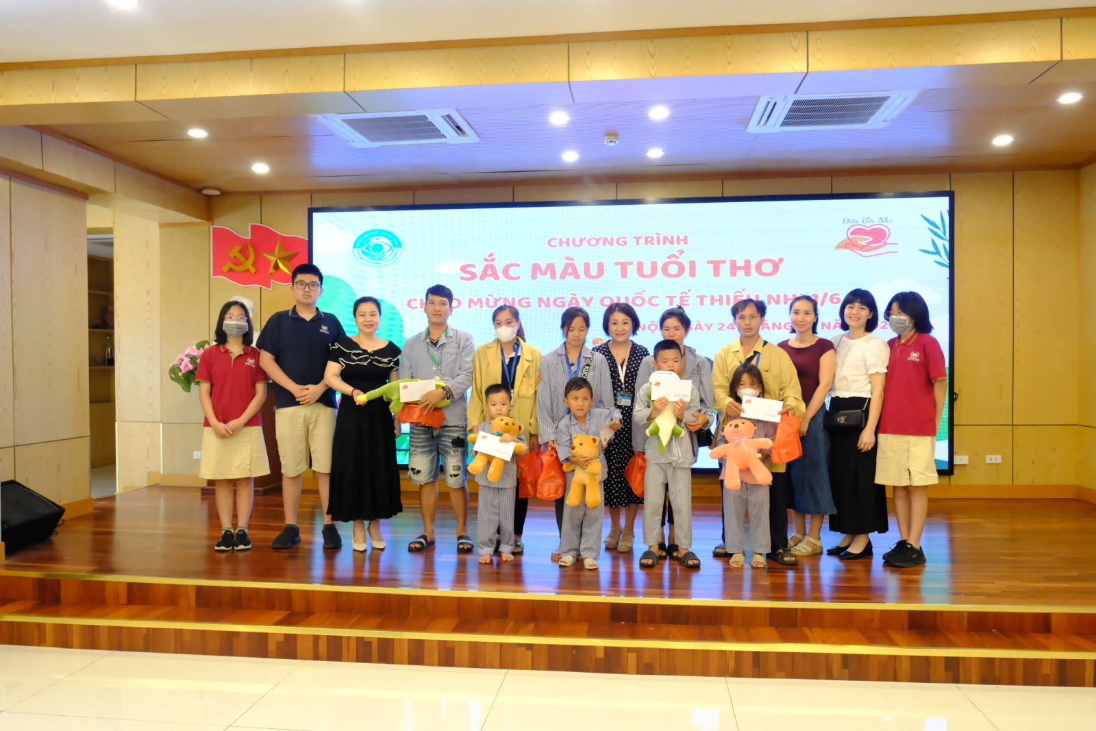 Cuối giờ chiều ngày 28/5/2024 tại Khoa Mắt trẻ em của Bệnh viện, 05 bé bệnh nhi mắc bệnh nặng, người dân tộc, gia đình có hoàn cảnh khó khăn đã được Công ty TNHH Môi trường Ngân Anh và Câu lạc bộ CIYE đã trao tặng mỗi bé một suất quà gồm đồ chơi và sữa cùng một triệu đồng với mong muốn được hỗ trợ một phần chi phí điều trị, khích lệ, động viên tinh thần các bé cùng gia đình bé giảm bớt lo âu trong quá trình điều trị tại Bệnh viện. Bên cạnh sự thấu hiểu, những lời động viên, những tình cảm yêu thương hai nhà tài trợ gửi tặng 80 suất quà gồm sữa và đồ chơi cho các bé bệnh nhi cùng gia đình nhân dịp Tết thiếu nhi 1/6.