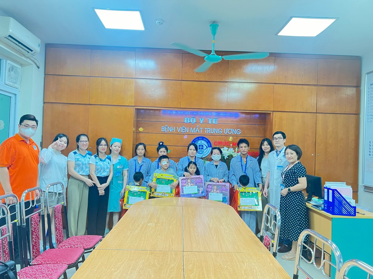 Chuỗi hoạt động dành tặng bệnh nhi nhân dịp Quốc tế thiếu nhi của Bệnh viện Mắt Trung ương được khởi động vào chiều ngày 24/5/2024 với chương trình “Sắc màu tuổi thơ” cùng phần tài trợ của Nhóm điều ước nhỏ và Câu lạc bộ Thiền ca doanh nhân. 48 gấu bông cùng nhiều suất quà ý nghĩa đã được trao tặng đến bệnh nhi. Bên cạnh đó, các bé còn được nghe những ca khúc yêu thương đến từ các bạn nhỏ trong Câu lạc bộ Thiền ca, được thể hiện và hát những ca khúc thiếu nhi mình yêu thích cùng các cô chú, anh chị Phòng Công tác xã hội, cùng nhà tài trợ.