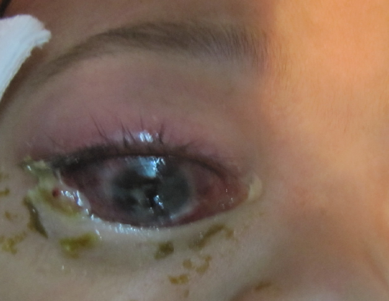 Ung thư võng mạc kèm ánh đồng tử trắng vào lác (mắt trái)